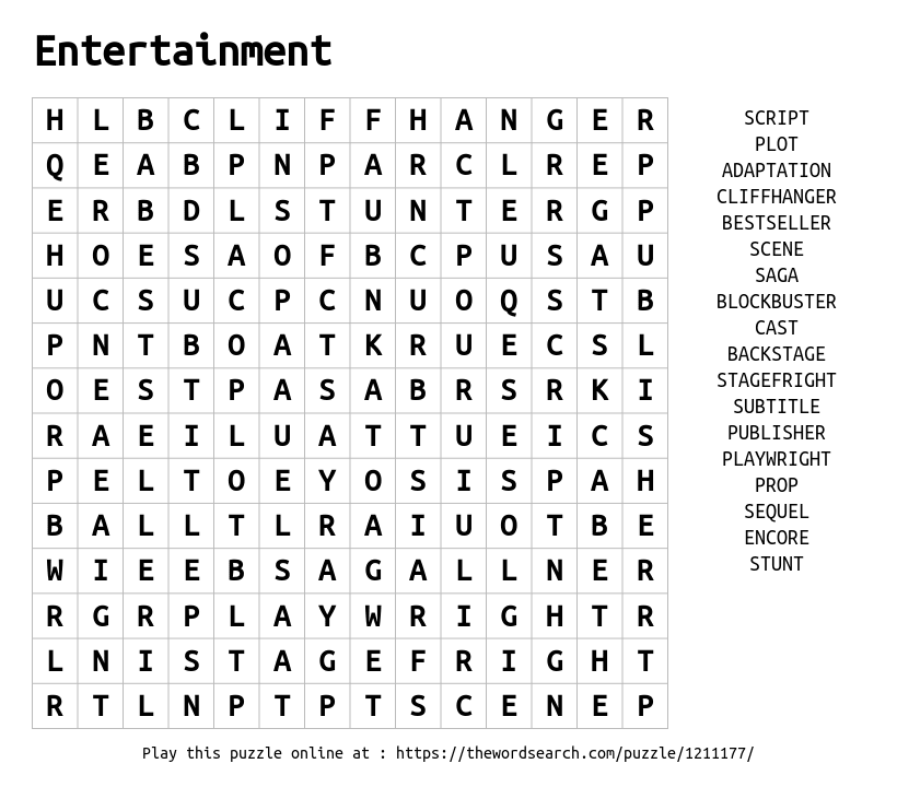 Word Search on Entertainment