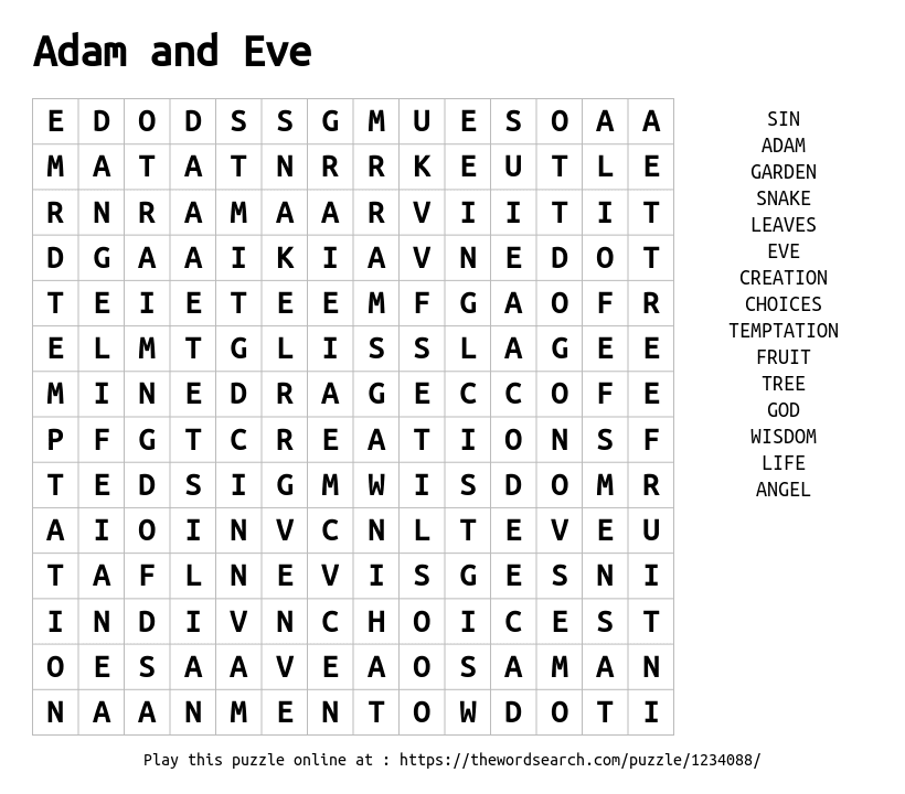 Word Search on Adam and Eve