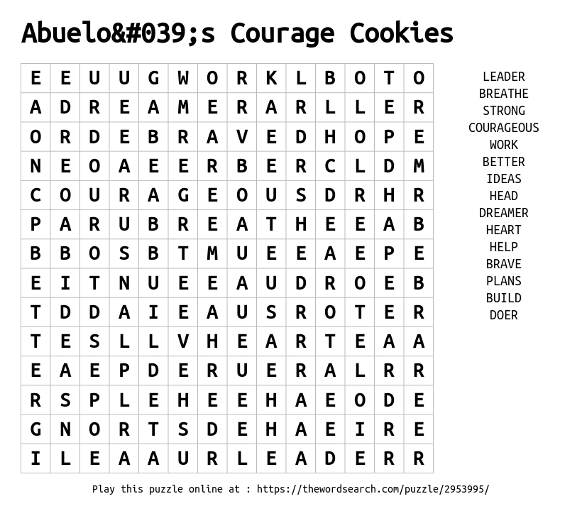 Word Search on Abuelo's Courage Cookies
