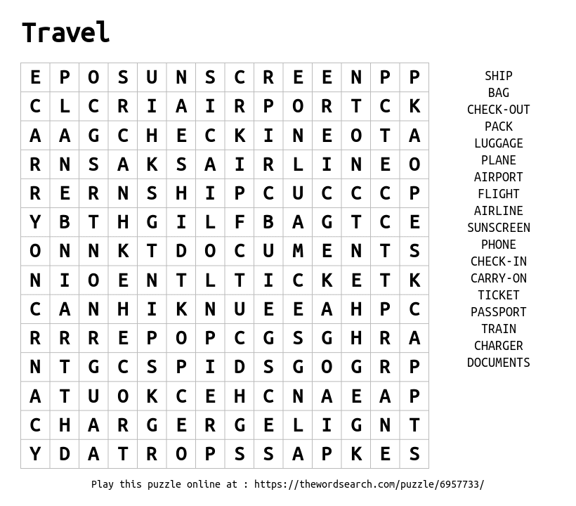 Word Search on Travel