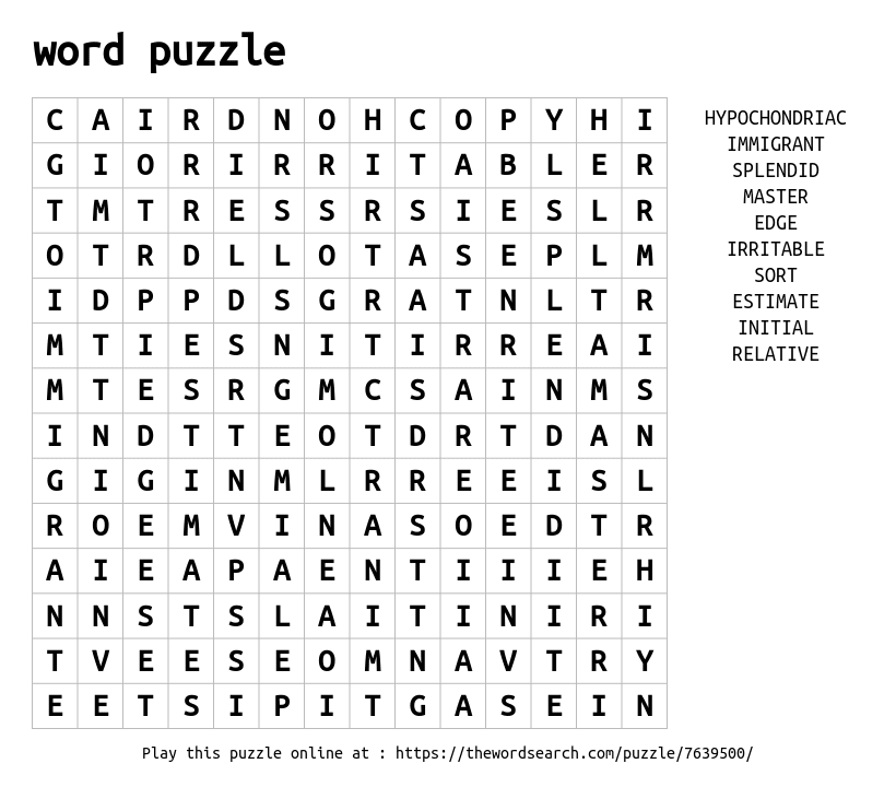 Download/Print : word puzzle