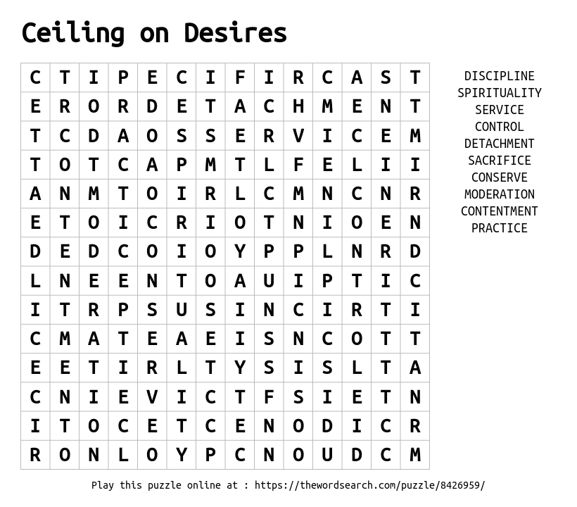 Word Search on Ceiling on Desires